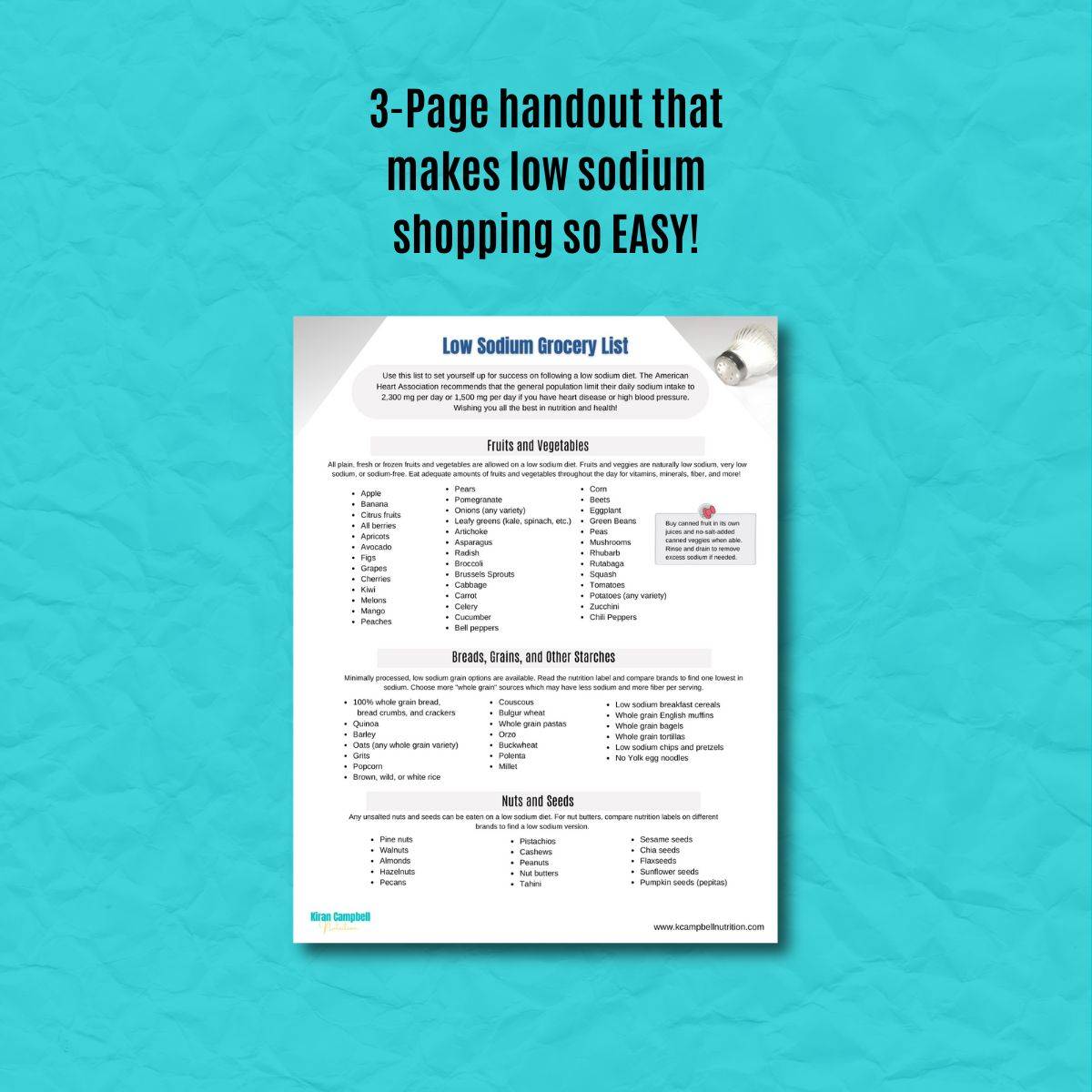 Download this free low sodium grocery shopping list to equip yourself with the most comprehensive low sodium foods list out there.